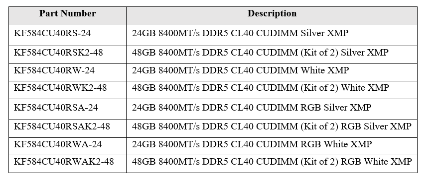 “Our new 8400MT/s CUDIMM modules have been thoroughly tested, qualified by the top motherboard manufacturers, and Intel XMP certified on the new Intel Z890 motherboards with Intel Core Ultra Series 2 processors,” says Kingston. “The introduction of overclockable DDR5 CUDIMM modules allows us to reach a broader range of professionals who demand top-tier performance and want to push the limits of their systems without compromising signal integrity.”
