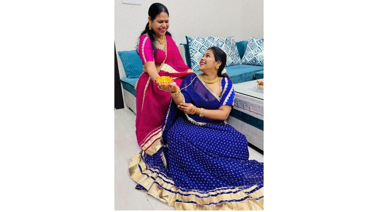 Karishma grew up observing that creative instinct. “She didn’t have formal training, but her sense of design was effortless,” Karishma recalls. “She could pick the right border, match the right shade, and the result always looked beautiful. Even the neighbourhood ladies would come to her for ideas.”